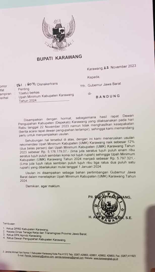 Makanya kita minta diskresi dari Bupati untuk mendesak bagaimana caranya supaya Bupati tidak mengeluarkan rekomendasi upah itu di luar dari PP 51 tahun 2023.
