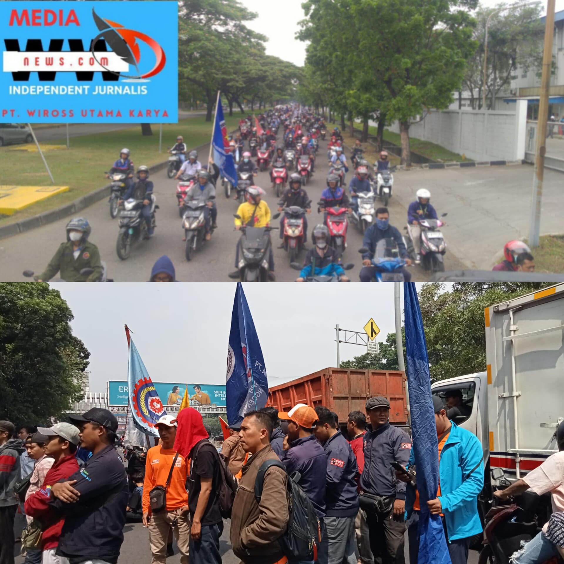Buruh bekasi melawan melakukan aksi demo di depan kantor wali kota bekasi dengan tuntutan meminta kepada Pemerintah daerah agar dewan pengupahan segera membahas kenaikan upah THN 2024.
