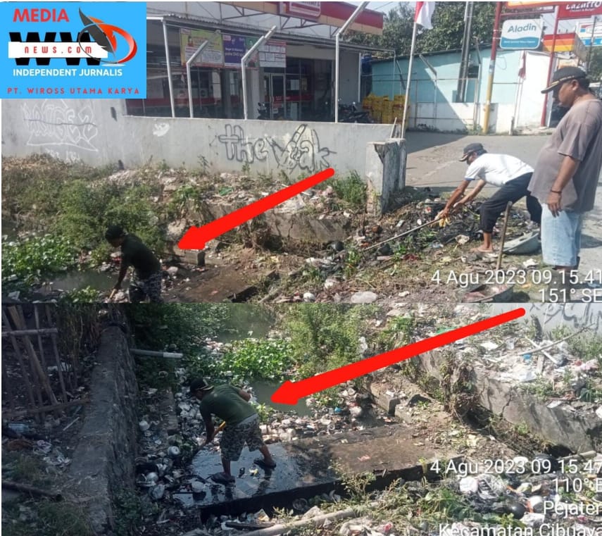 Bau yang menyengat dari gundukan sampah yang tersumbat akan berdampak pada warga masyarakat desa cibuaya bila tidak dibersihkan,ini semua dari kantong saya pribadi untuk memberi makanan, minuman kopi pada warga masyarakat yang ikut kerja bakti,tutur kades Ita Warsita.